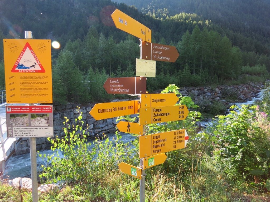 bei Gsteihüs verzweigt sich der Weg. Linker Hand führt er durch die enge Gondoschlucht
