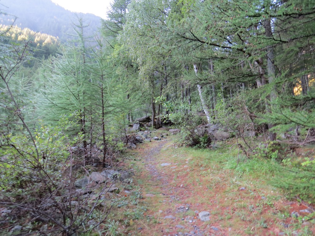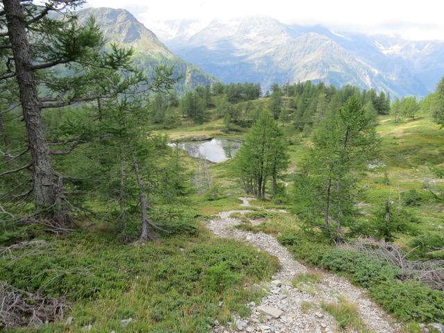 bei Seetole erreichen wir mitten in diesem sehr schönen Lärchenwald, auf ca. 2100 m, den kleinen namenlosen Bergsee