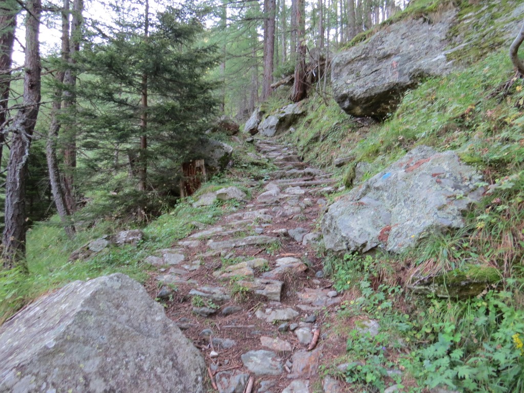der historische Saumpfad, auf beiden Seiten von Steinen befestigt, ist mittlerweile breiter geworden