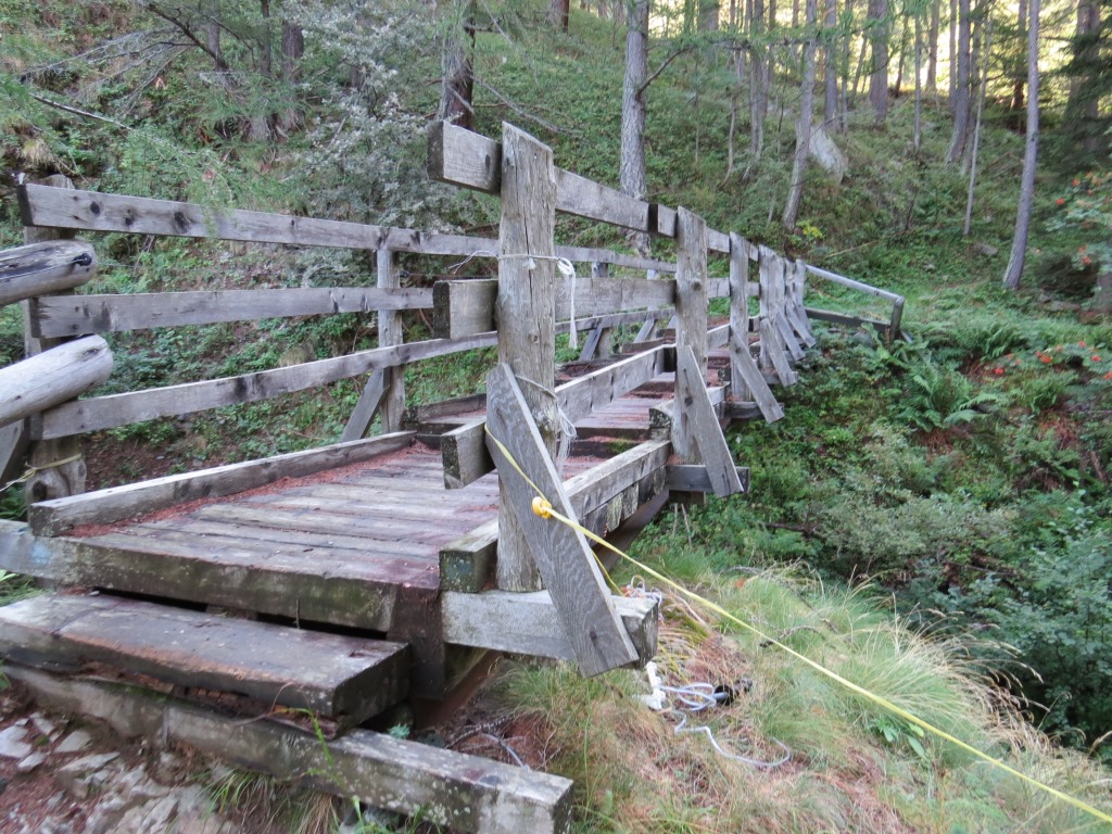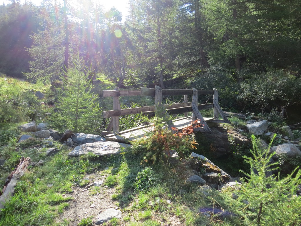 über eine Holzbrücke überqueren wir das erste mal den Bach, der uns weiter begleiten wird