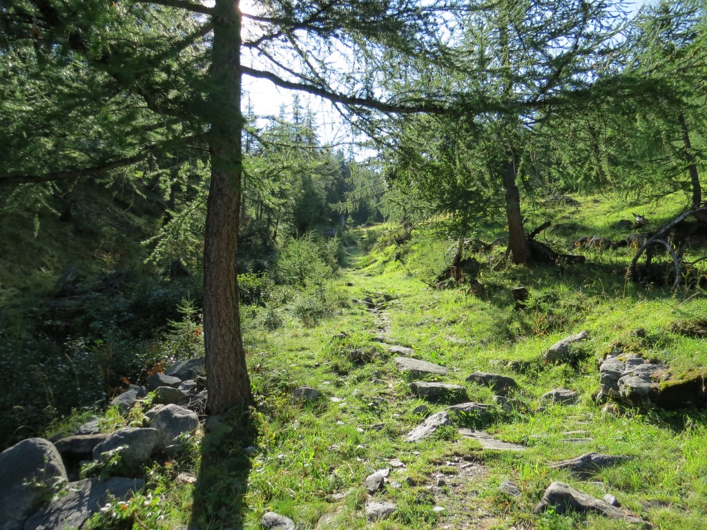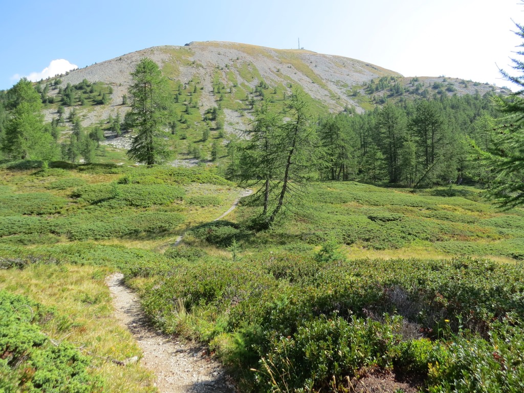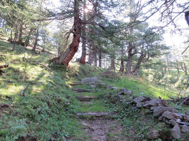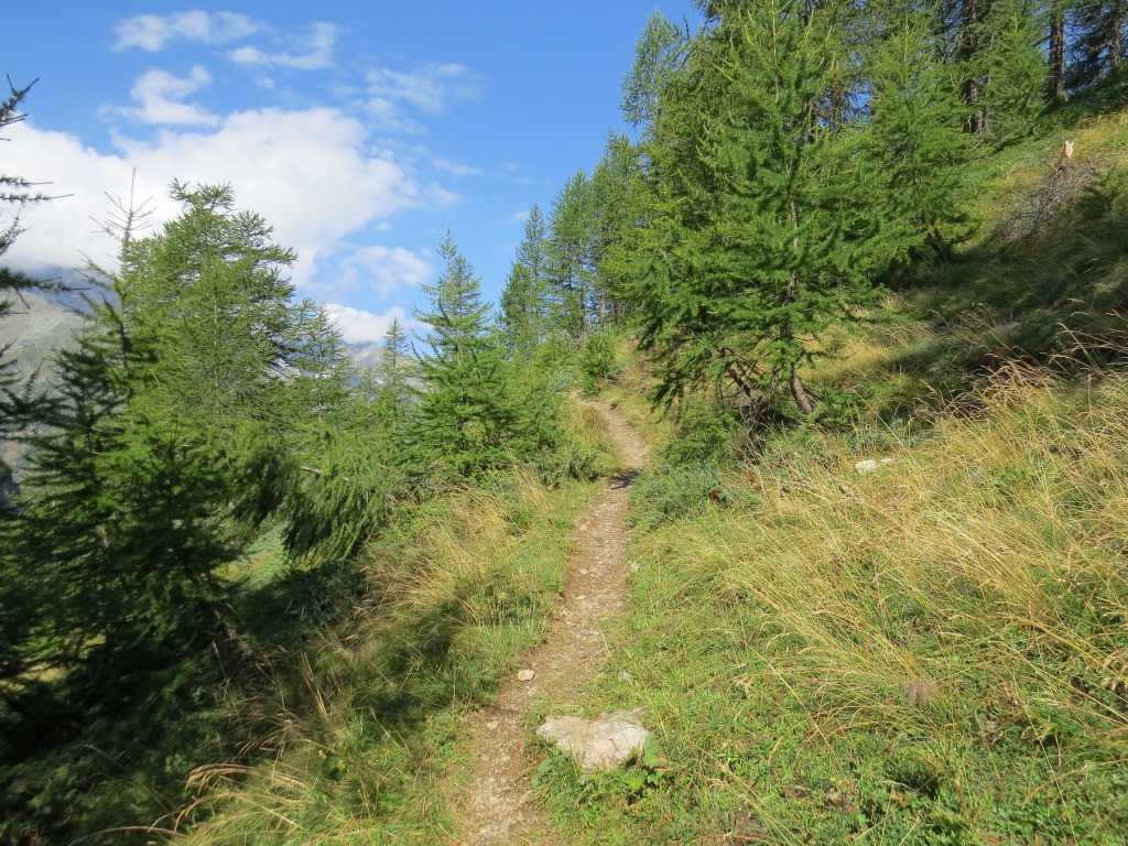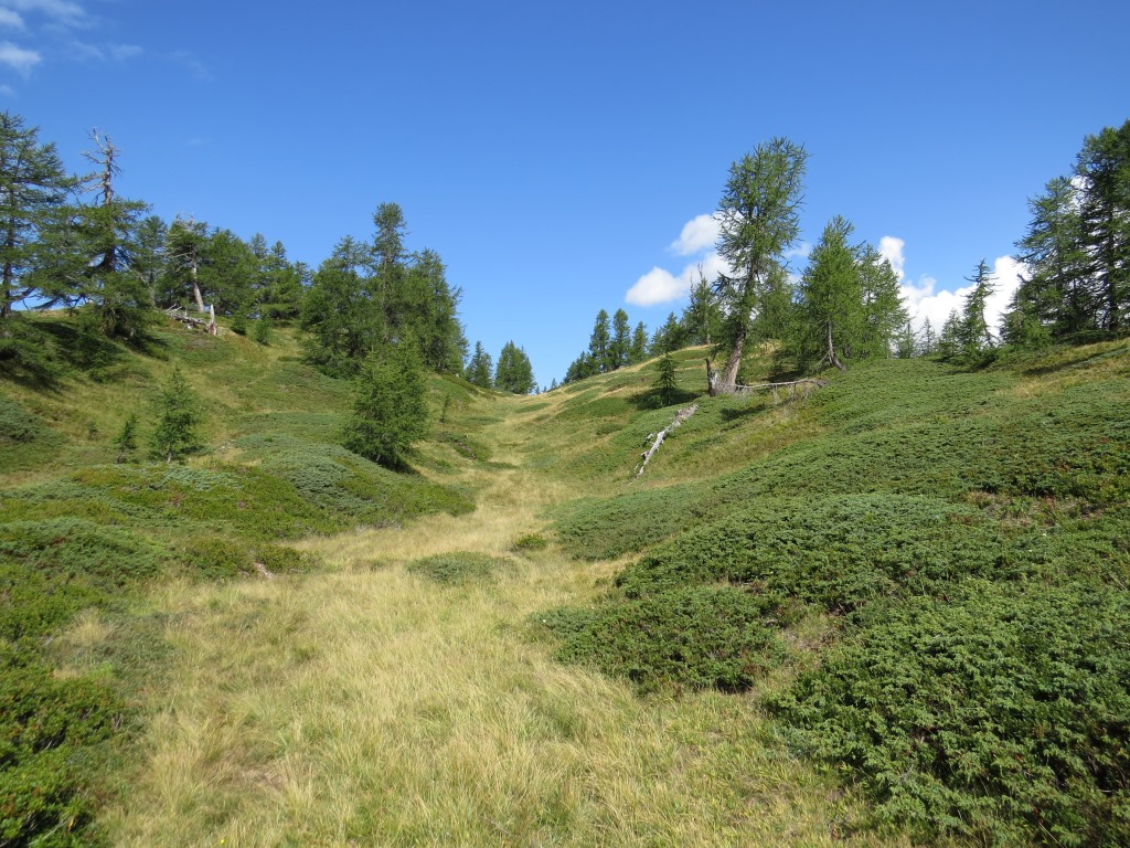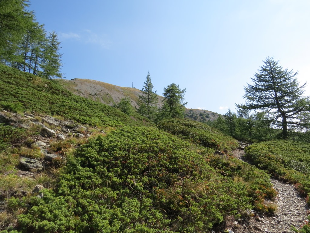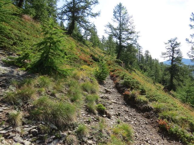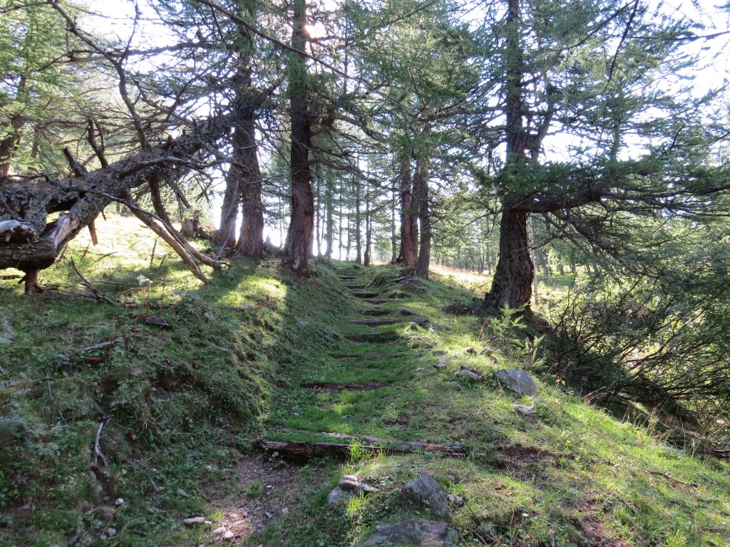 ...führt uns der abwechslungsreiche Weg durch einen lockeren Lärchenwald im Zickzack weiter bergauf