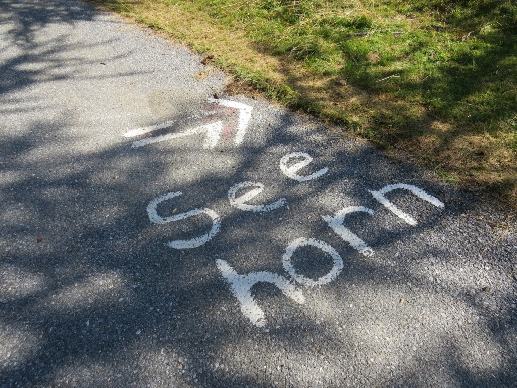 beim Wegweiser kein Hinweis "Seehorn"! Der Hinweis "Seehorn" ist auf dem Asphaltsträsschen geschrieben
