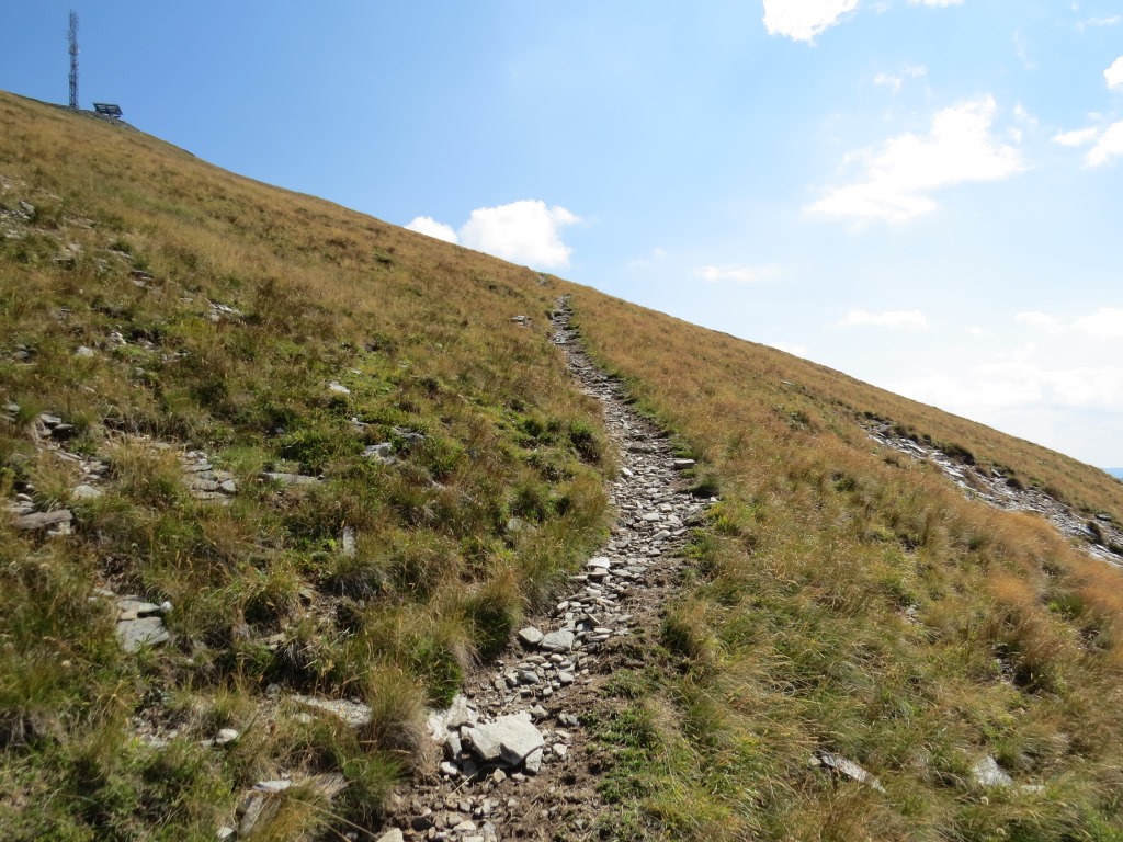 ...zieht der Bergpfad direkt zum Gipfel hinauf. Einzig der grosse Sendemast trübt ein bisschen die Aussicht