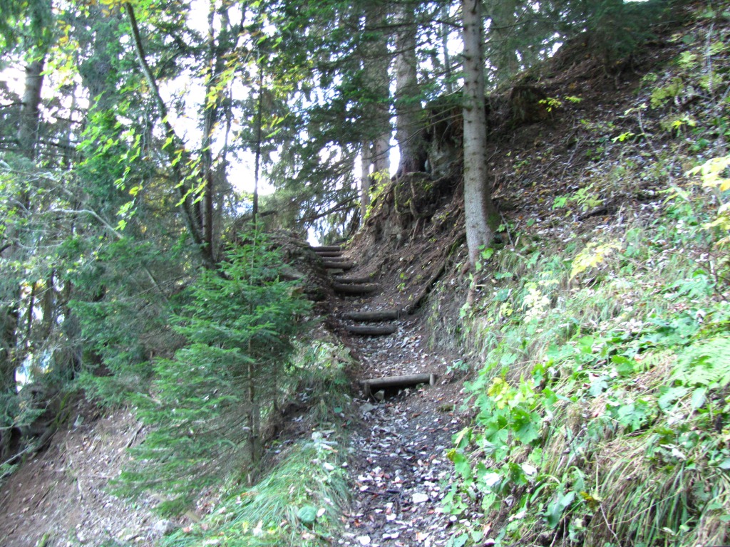 steil und zum Teil rutschig geht es abwärts. Gutes Profil an den Wanderschuhen ist hier Gold wert