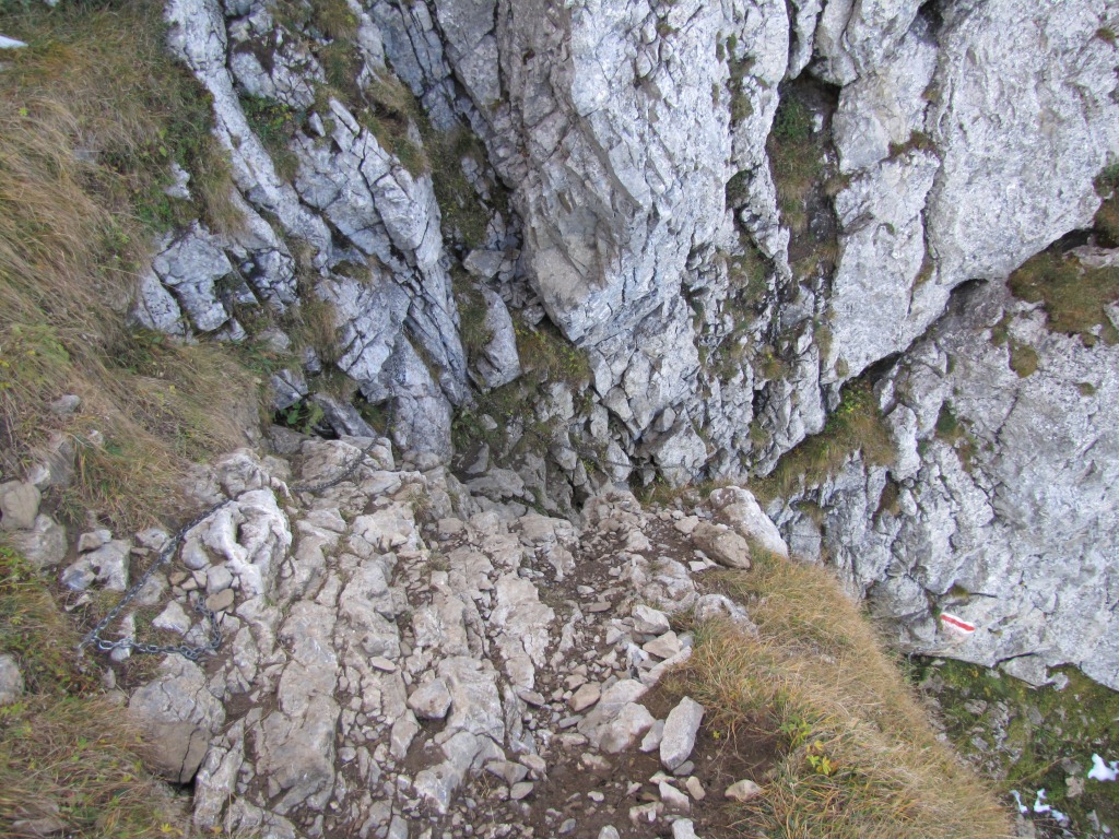 dann weiter seitwärts am Berghang entlang, (mit Ketten gesichert) aufwärts