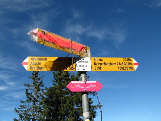 Wegweiser bei Greberegg 1550 m.ü.M.