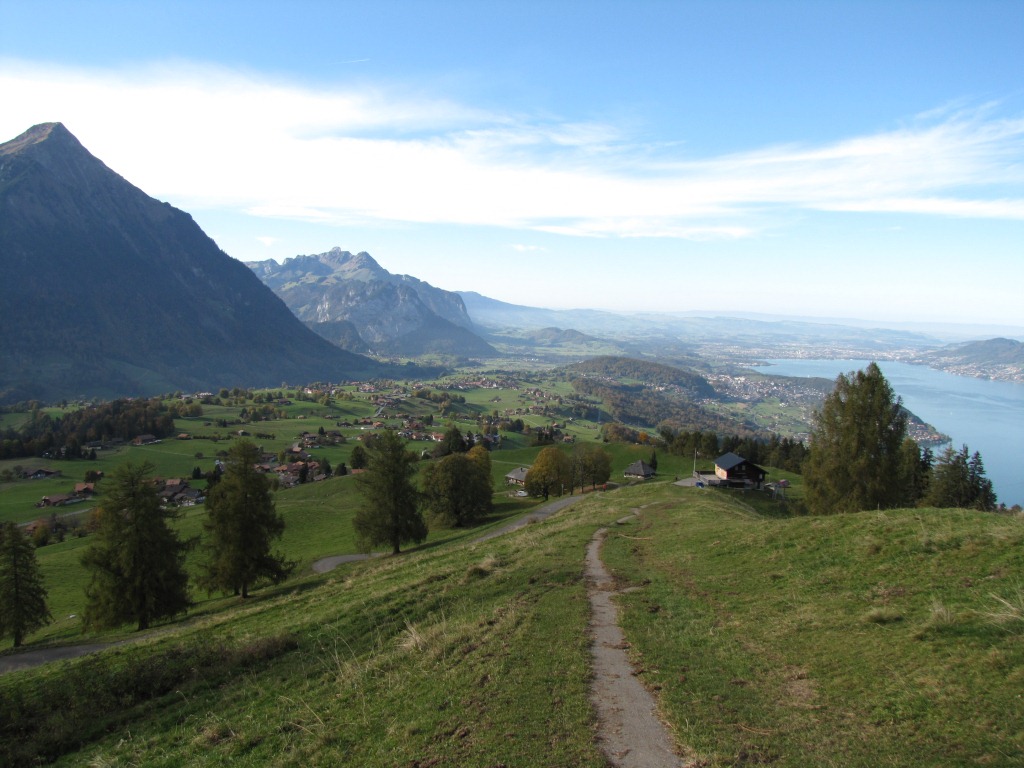 auf den Thunersee, Interlaken und den Brienzersee. Nur auf dieser Wanderung kann man beide Seen auf der ganzen Länge bestaunen