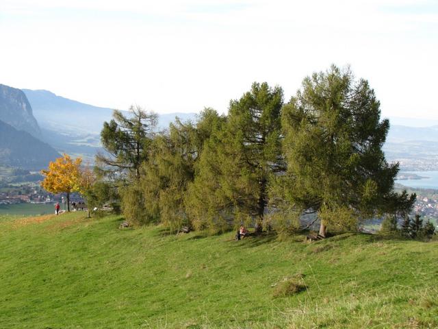 unter jeder Lärche eine Bank. Ordnung muss sein. Bei so einer schönen Aussicht sind die Bänke vermutlich oft alle besetzt
