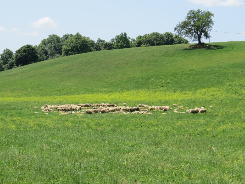 wir durchqueren Weiden mit Schafherden...