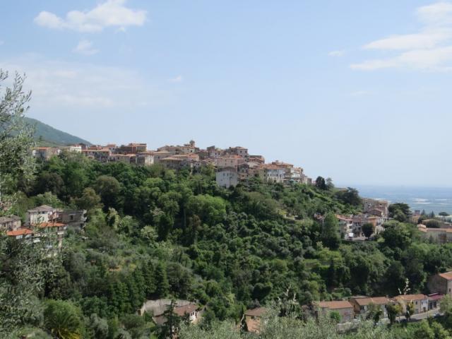 während dem wandern blicken wir hinauf zum Dorf Rocca Massima