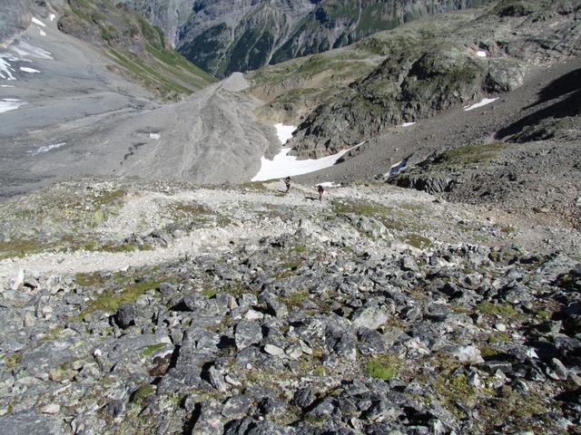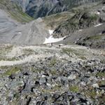 hat man die andere Seite des Lötschegletscher erreicht, führt der Weg über Blockschutt auf die Seitenmoräne Datum 16.04.2013