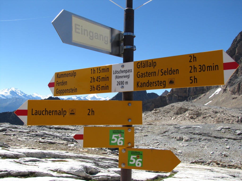 Wegweiser bei der Lötschenpasshütte 2690 m.ü.M. Datum 17.04.2013