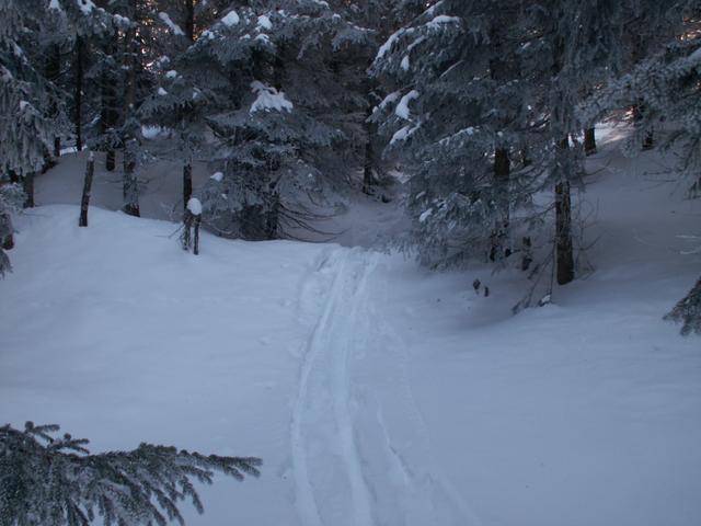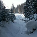 durch den Wald geht es Richtung Mädems-Vorsäss Datum 02.02.2009