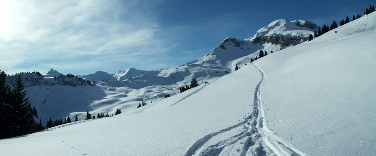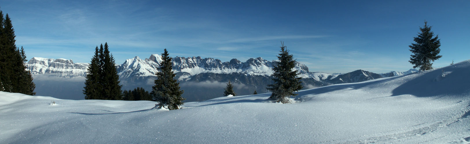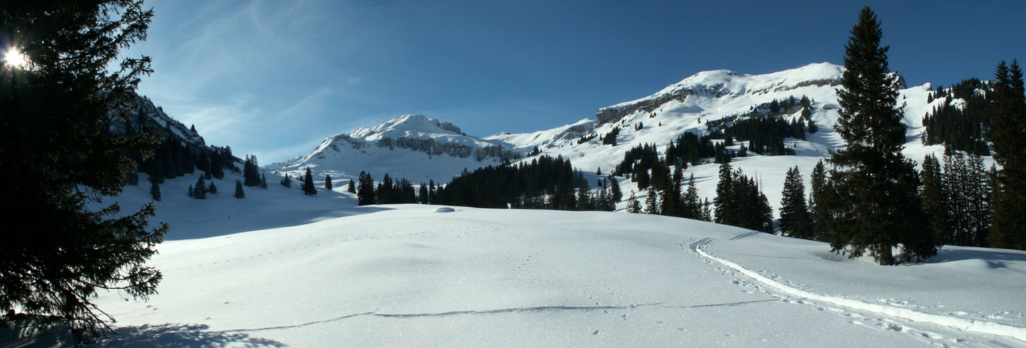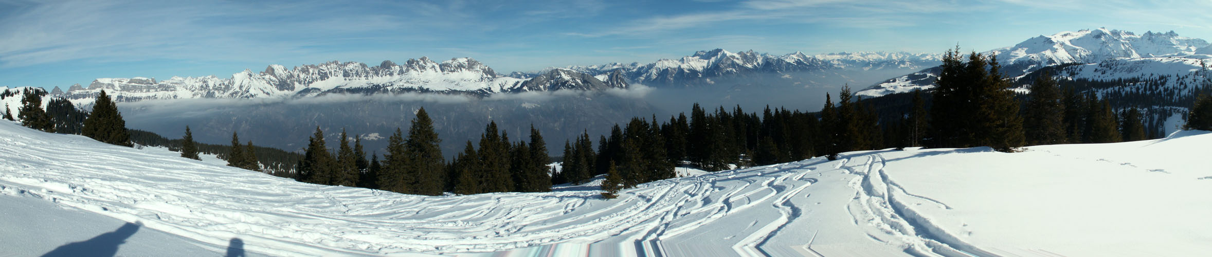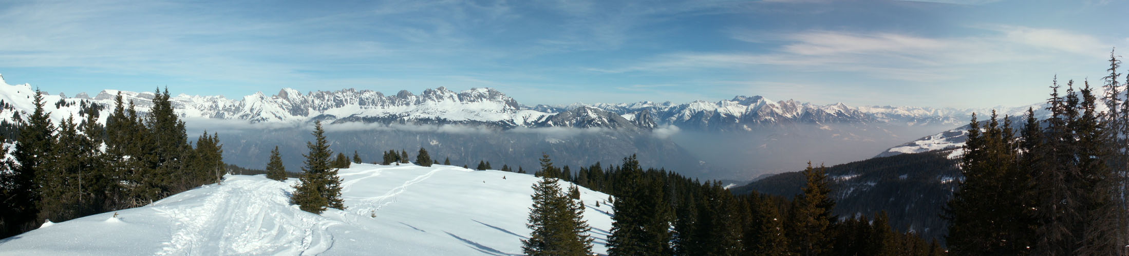 Breitbildfoto vom Plattisegg mit Blick Richtung Alvierkette Datum 07.12.2016