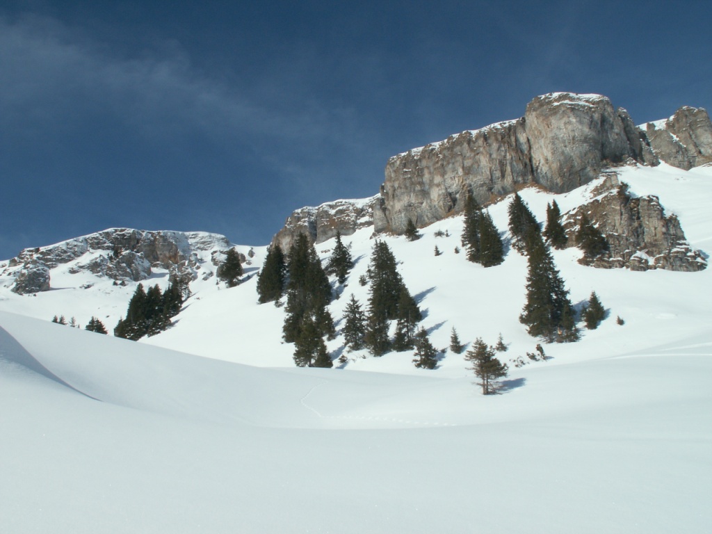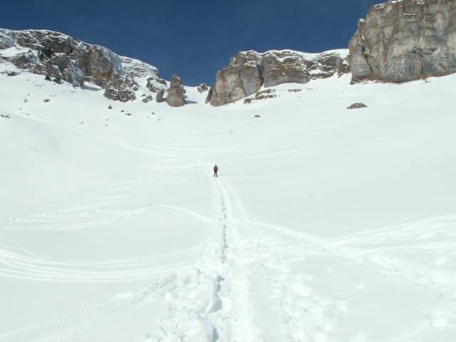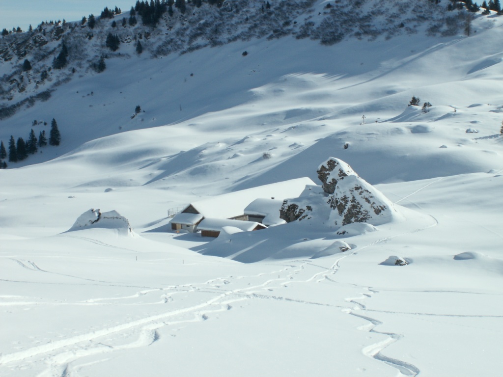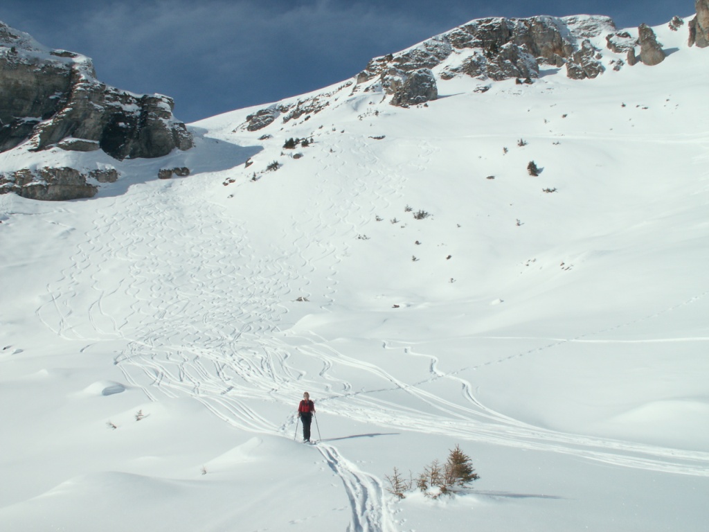 über tief verschneite Hänge geht es weiter Richtung Mädems Datum 02.02.2009