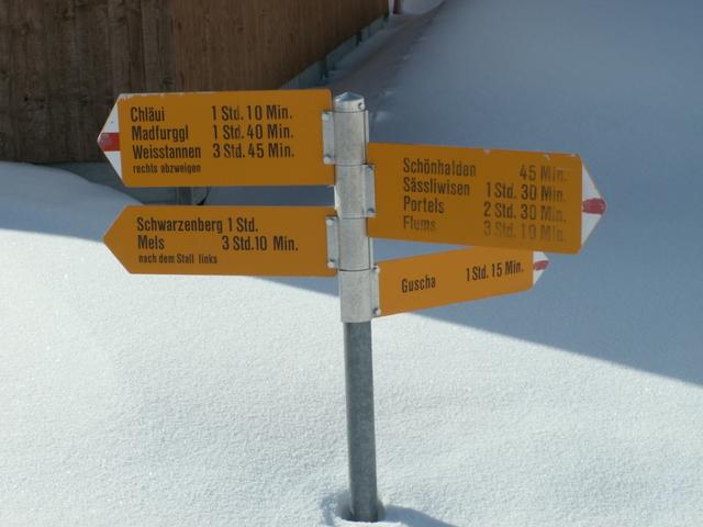 Wegweiser bei Mädems-Hintersäss 1776 m.ü.M. Datum 02.02.2009