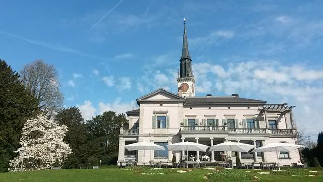auf der Terrasse des Restaurant in der Villa Villette legen wir eine Kaffeepause ein