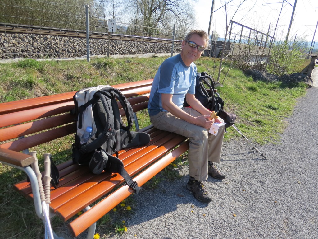 auf einer Bank legen wir eine Pause ein und geniessen feines Gebäck