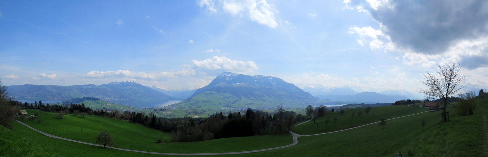 schönes Breitbildfoto mit Rossberg links, Zugersee und Rigi. Beide haben wir schon besucht