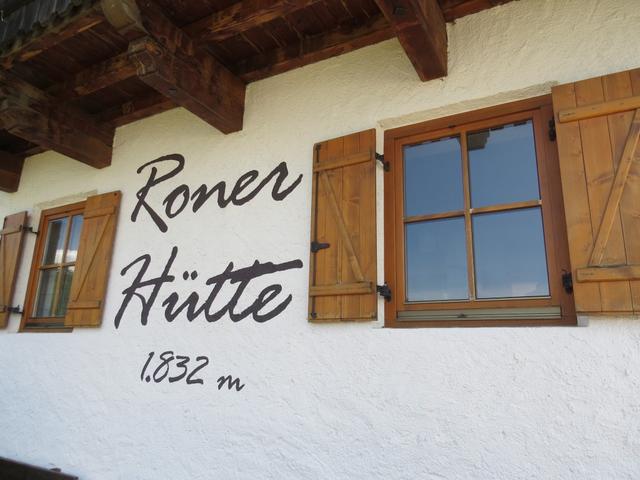 vor uns taucht die Ronerhütte auf 1832 m.ü.M.