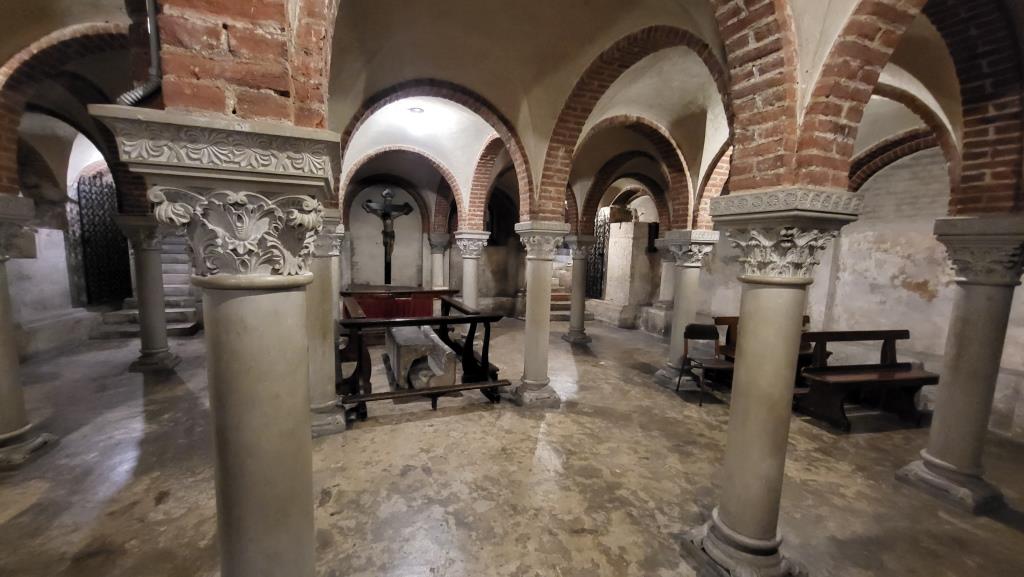 die Krypta beherbergt die Granitarche des San Teodoro. Die Decke beherbergt Fresken aus dem 16. Jhr.