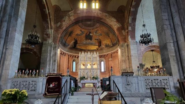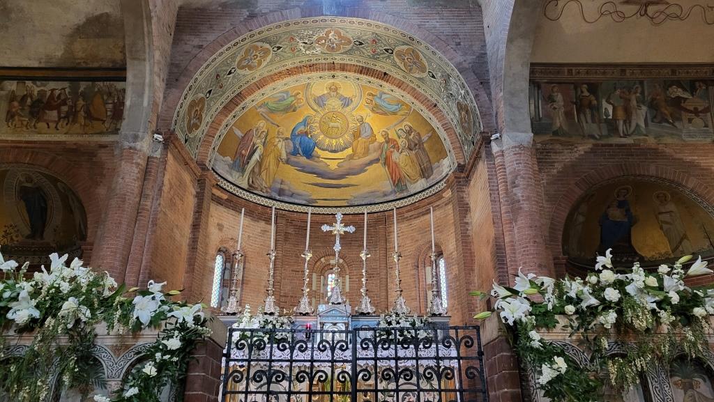 die Zusatzbezeichnung Ciel d’Oro bezieht sich auf die vergoldete Halbkuppel der Hauptapsis und des Hauptschiffs