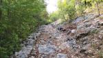 über eine Reihe von Serpentinen geht es danach steil und rutschig bergab, und wir verlassen den Wald