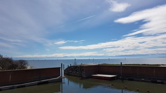 vom Schiff aus genissen wir eine schöne Aussicht auf die verschneiten Berge Datum 05.04.2018