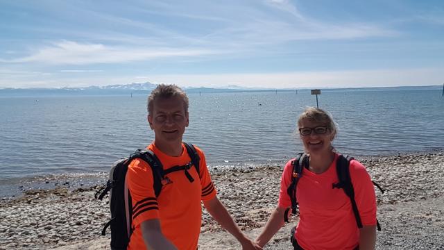 Erinnerungsfoto aufgenommen bei einem Strand direkt am Bodensee Datum 05.04.2018