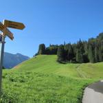 Wegweiser bei Bütschi 1815 m.ü.M. hier bogen wir links ab Richtung Gilbach