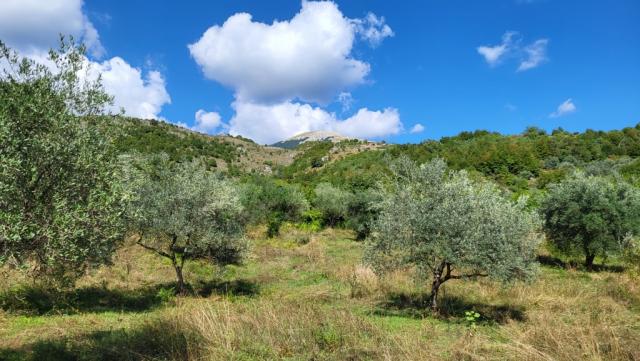 wir verlassen Vico nel Lazio und wandern durch weite Olivenhaine Datum 09.01.2026