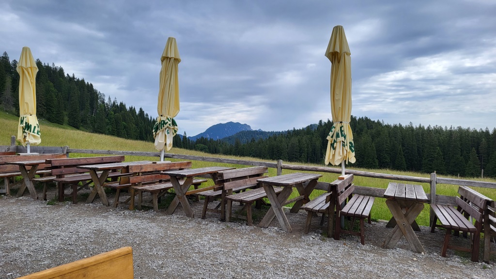 die Staffelalm ist wieder ein wichtiger Wanderweg Knotenpunkt. Am Horizont erkennen wir die Benediktenwand Datum 20.12.2024