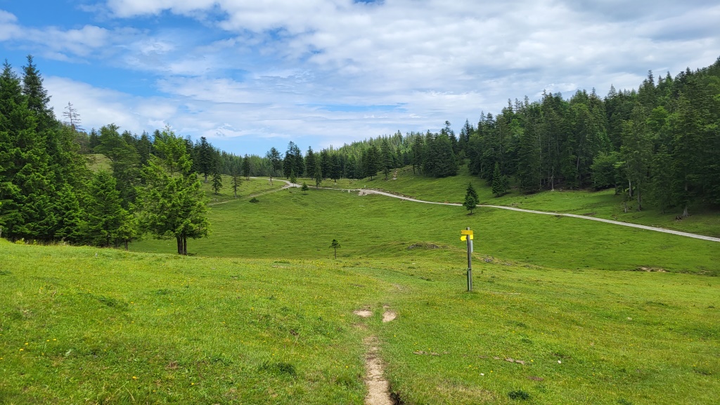 der Maximilianweg teilt sich die heutige Etappe mit dem E4 und der Via Alpina Datum 22.12.2024