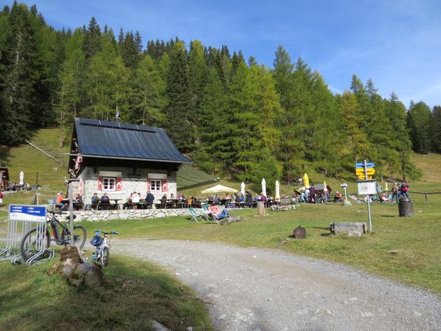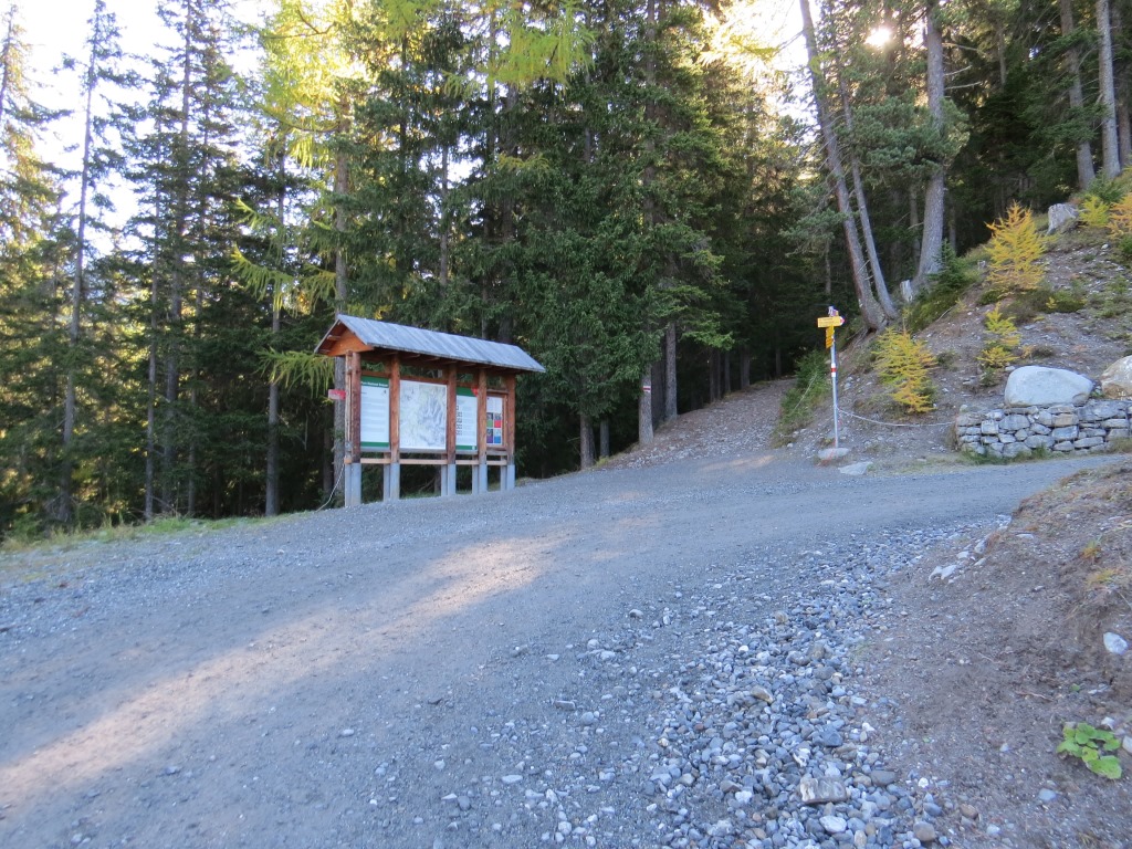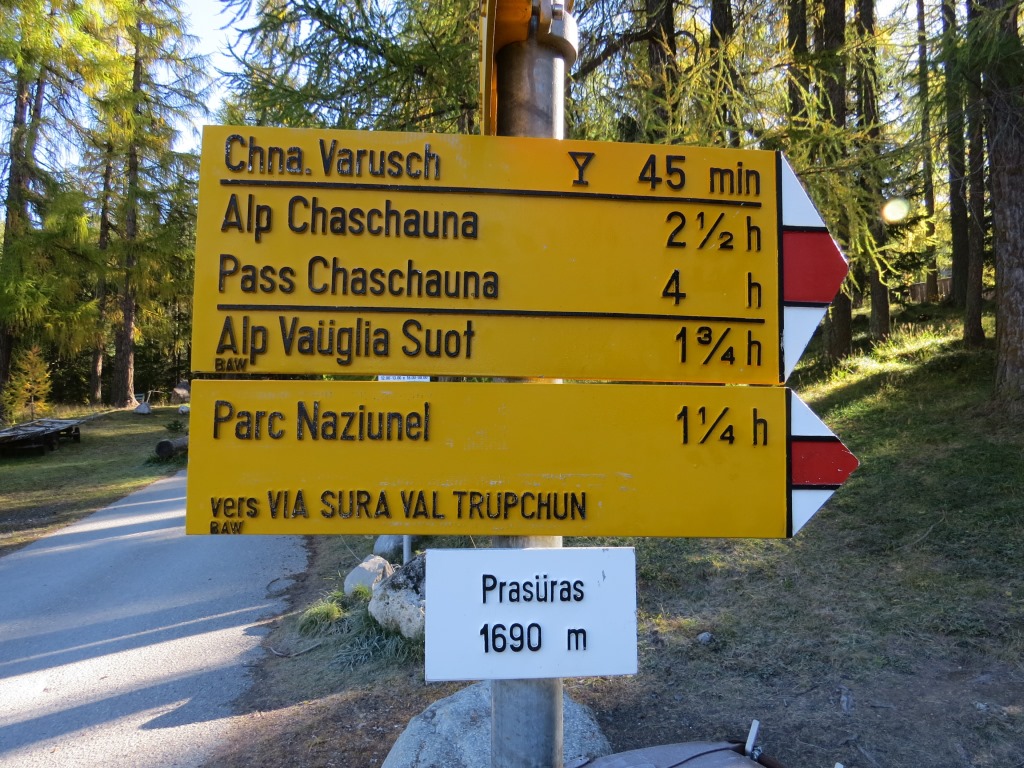 auf diesem geht es in wenigen Minuten bergab zum Parkplatz Prasüras 1690 m.ü.M. zurück