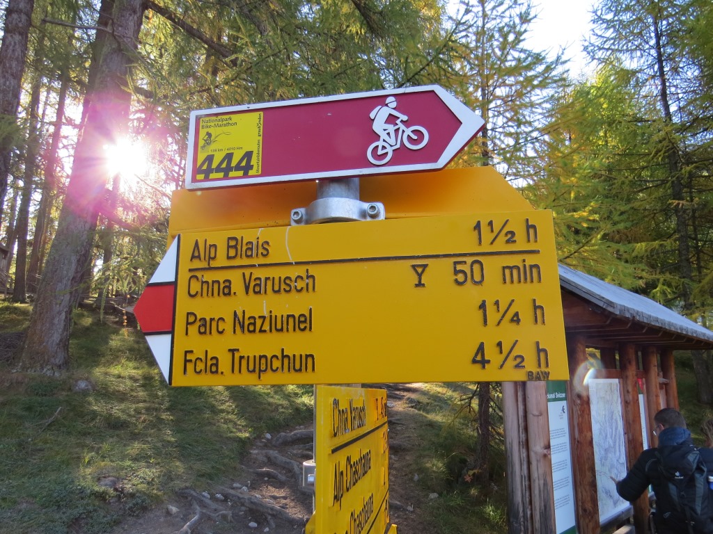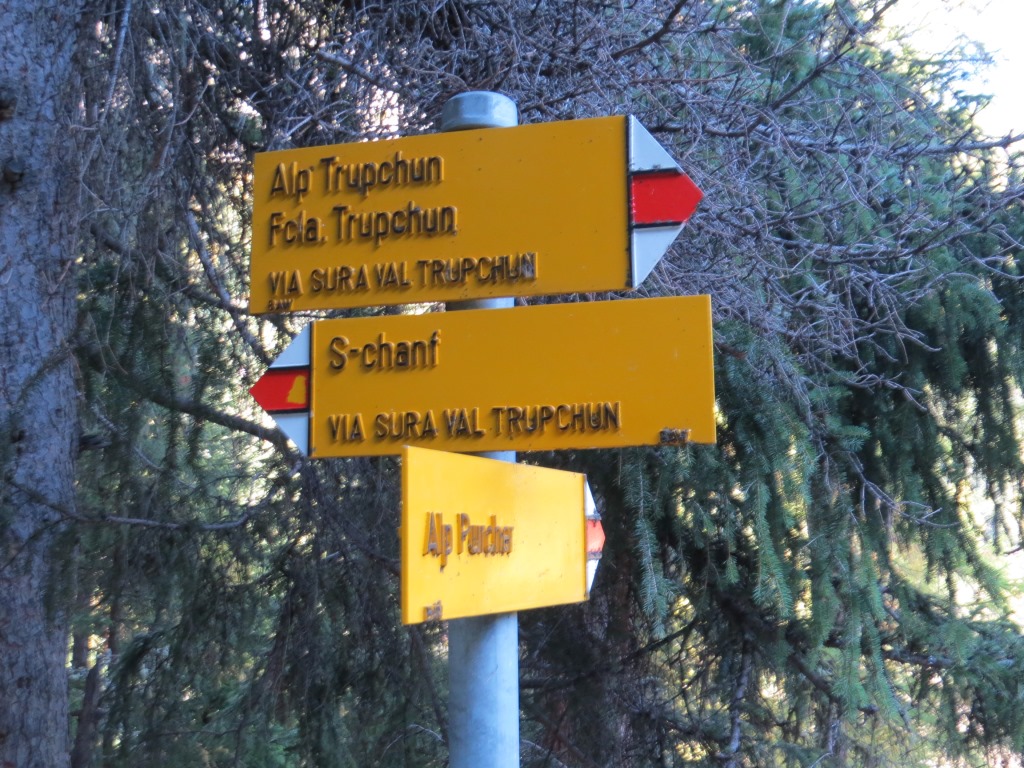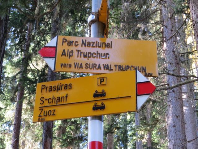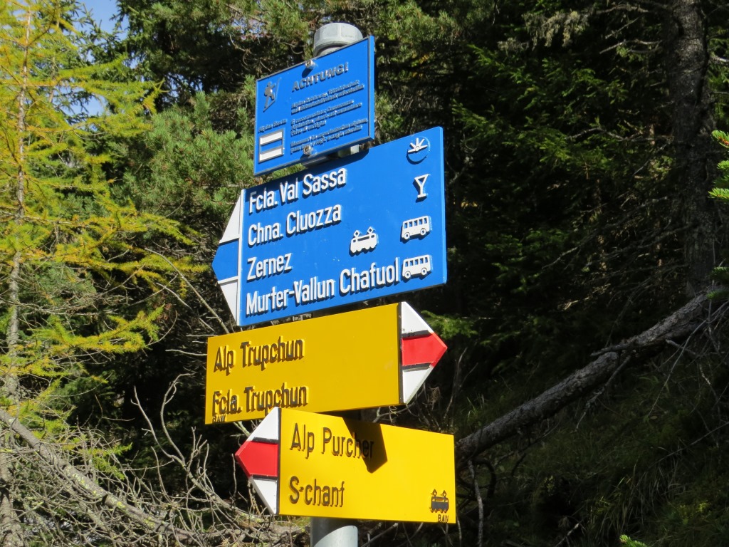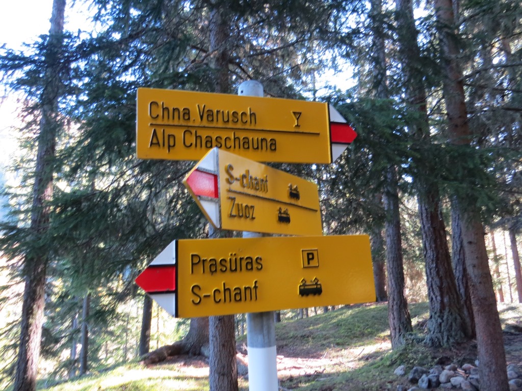 bei der Weggabelung Punkt 1816 m.ü.M. behalten wir die Richtung Chamanna Varusch bzw. Alp Chaschauna