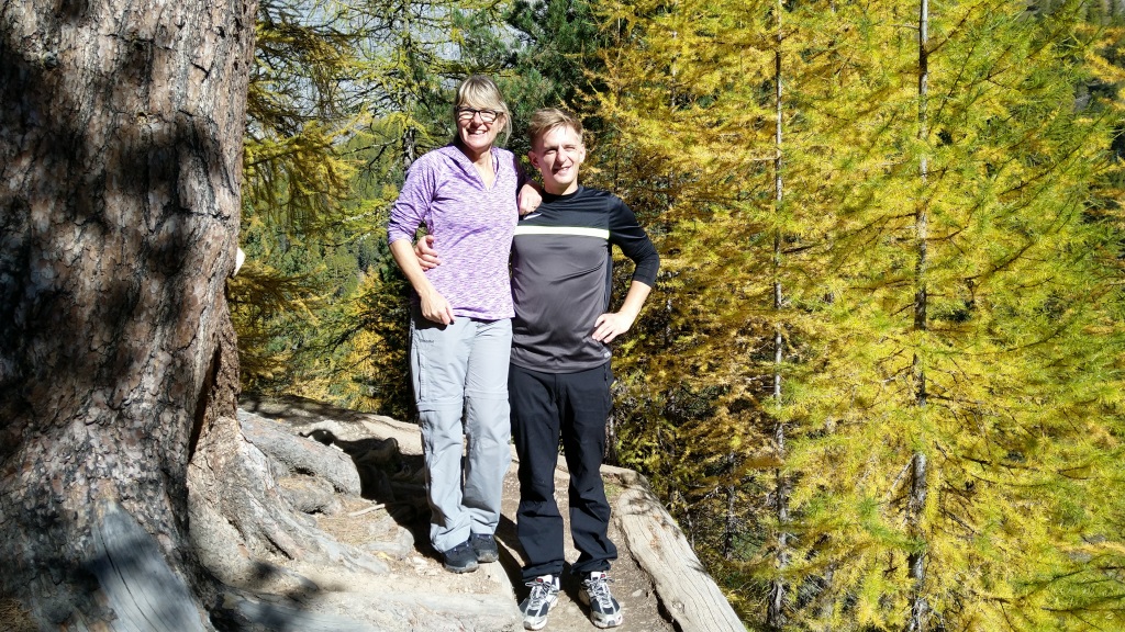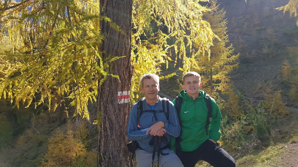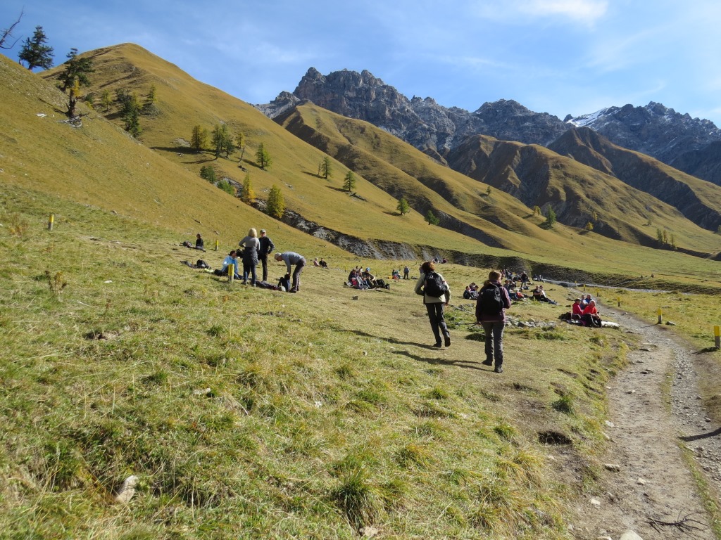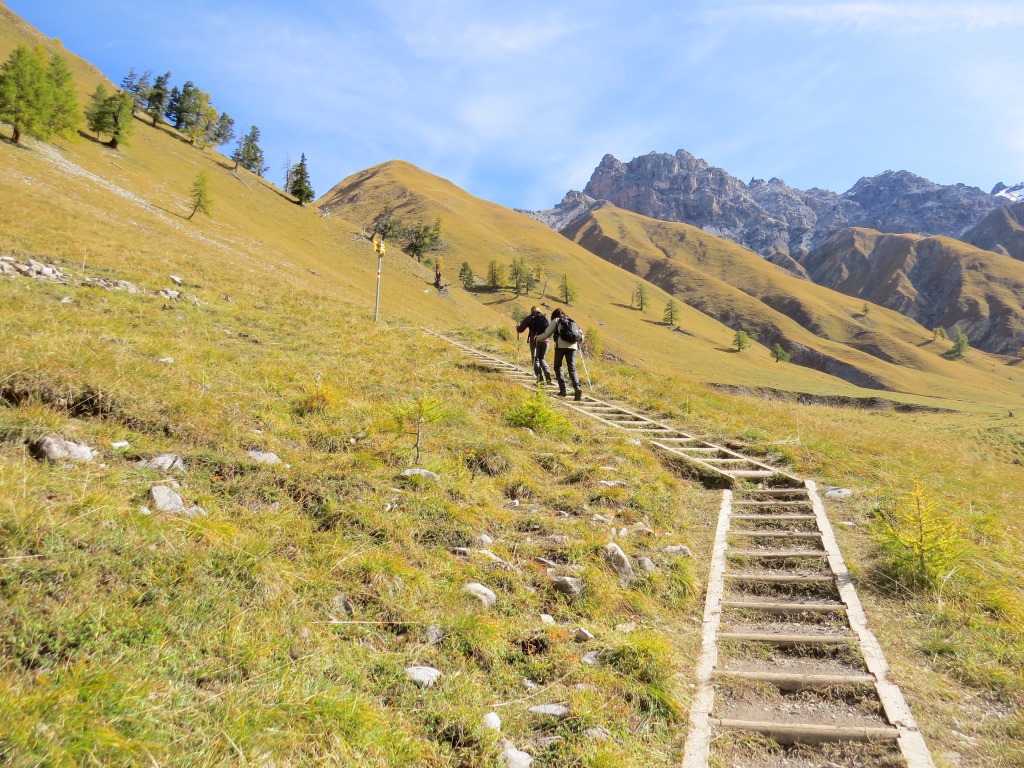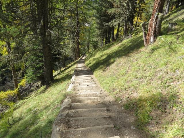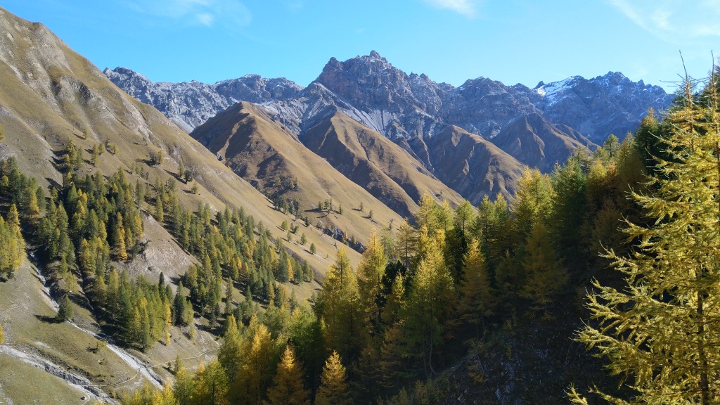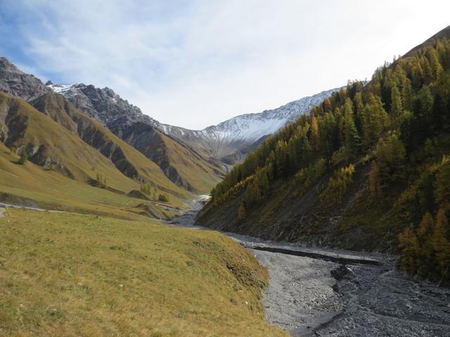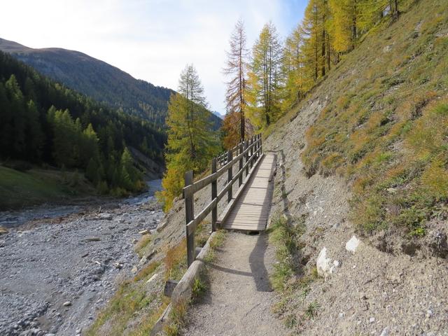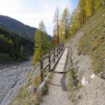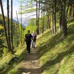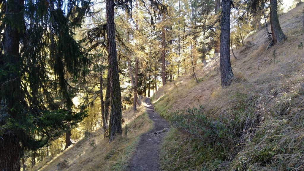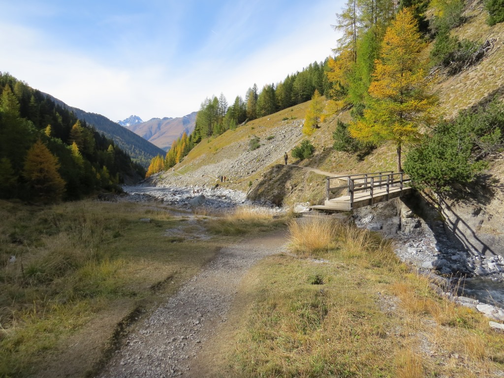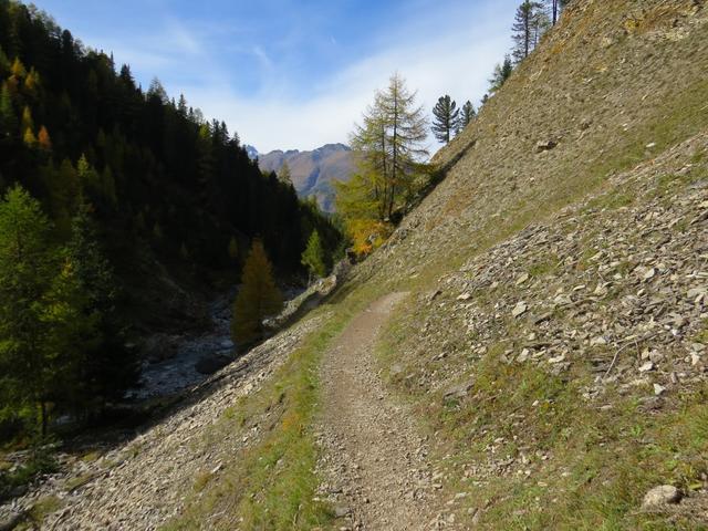 durch sich langsam färbenden lichten Lärchenwald, wandern wir talauswärts