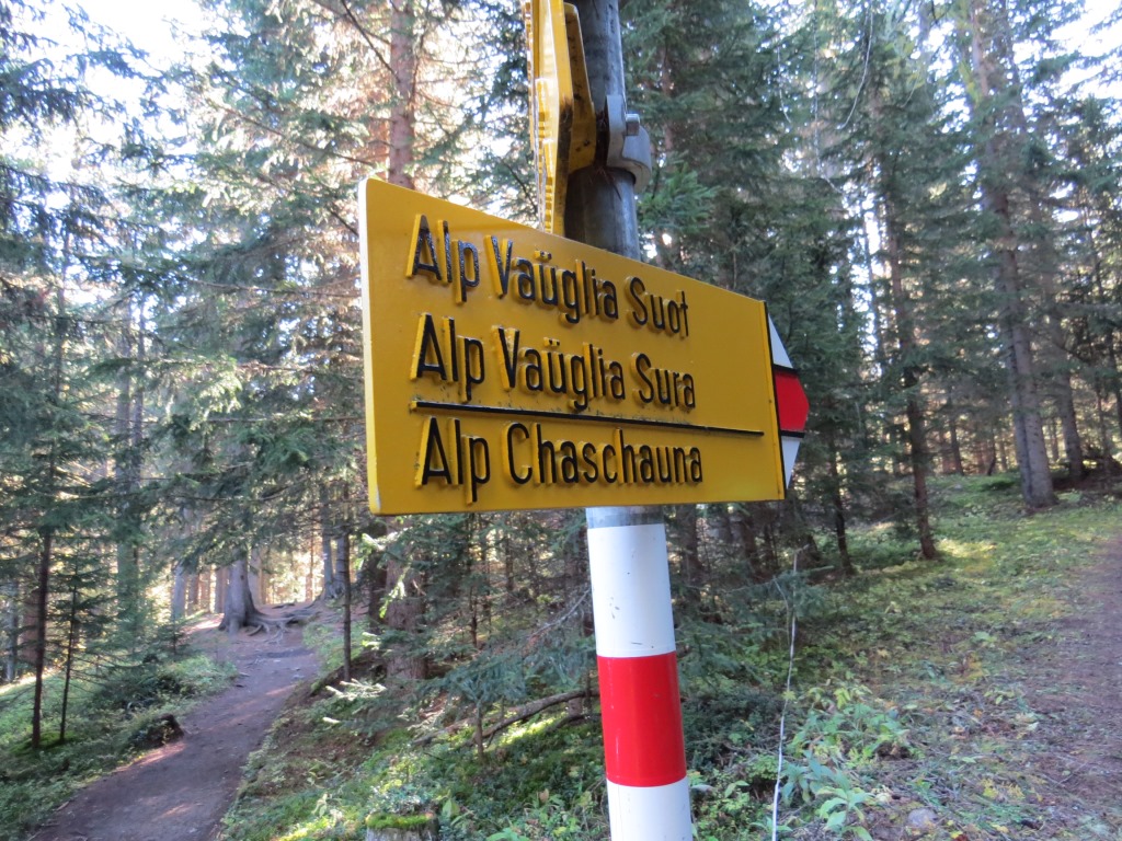 ...sondern halten uns weiterhin rechts, Richtung Alp Vaüglia Suot bzw. Alp Chaschauna