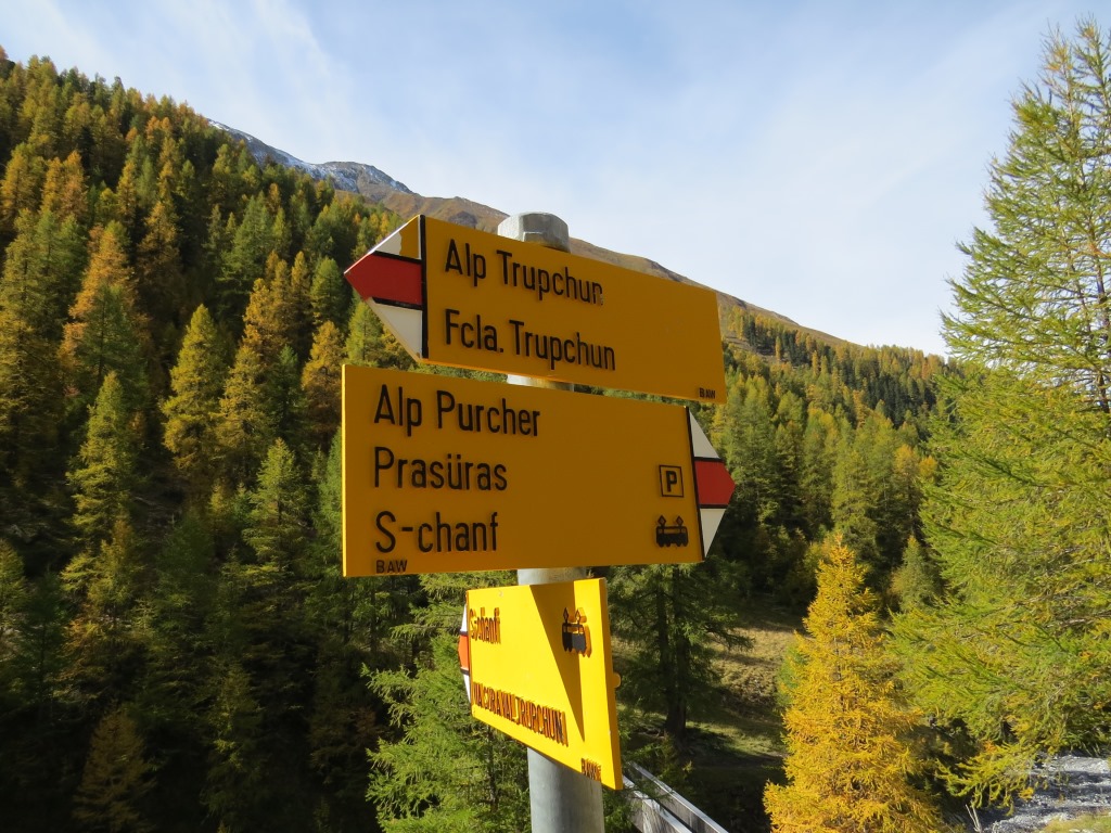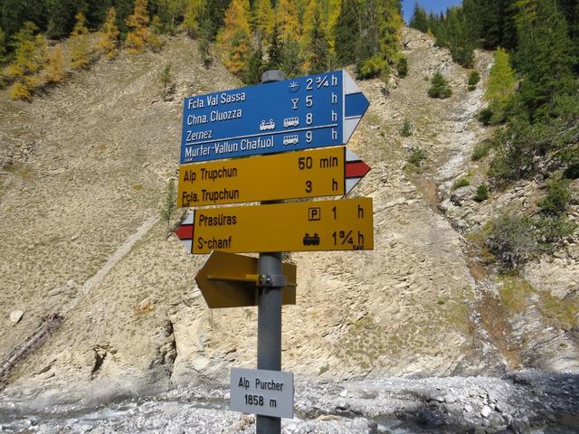 ...die Abzweigung zur Alp Purcher Punkt 1921 m.ü.M. Wir bleiben weiter auf dem oberen Weg