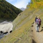 über einen schmalen Fussweg wandern wir auf der orografisch linke Seite der Ova da Varusch...
