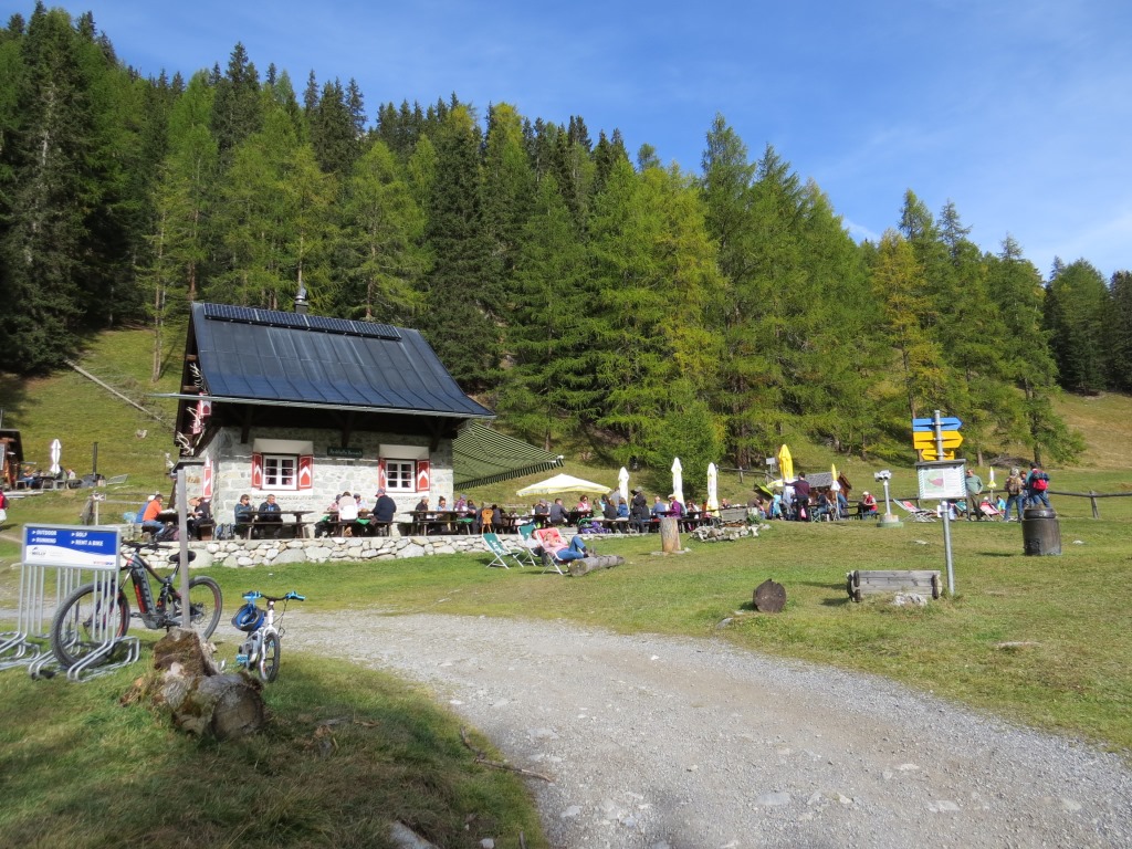 bald darauf ist die Chamanna dal Parc Varusch erreicht, die etwas oberhalb des Weges liegt