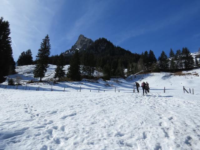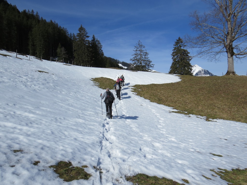 über offenes Gelände geht es hinüber zur zweiten Strassenkehre bei Lengschwendi 1116 m.ü.M.