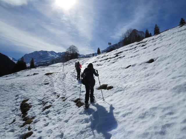 die Schneeschuhroute führt uns nun hinein ins Farnital