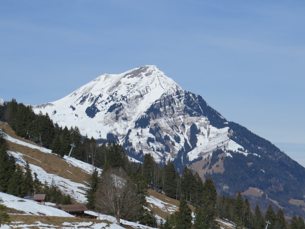 der Niesen. Gut ersichtlich die Geleisen der Zahnradbahn. Dort oben sind wir auch schon gestanden