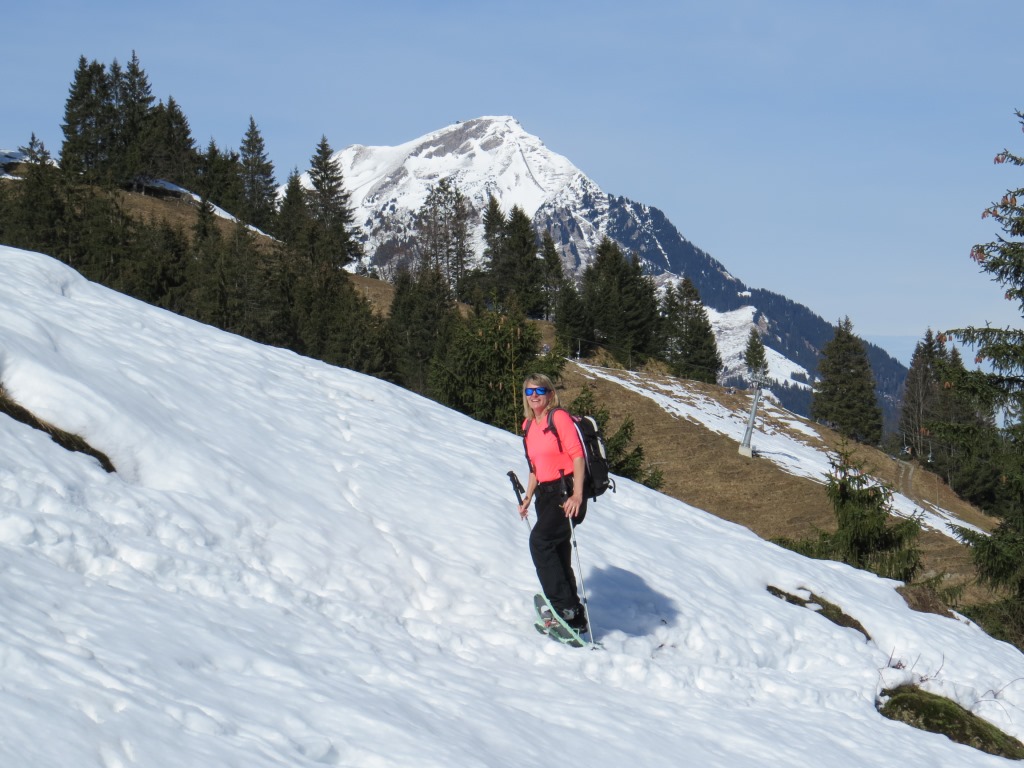 dem Schlittenweg entlang erreichen wir danach über einen Höhenweg mit prächtiger Aussicht...