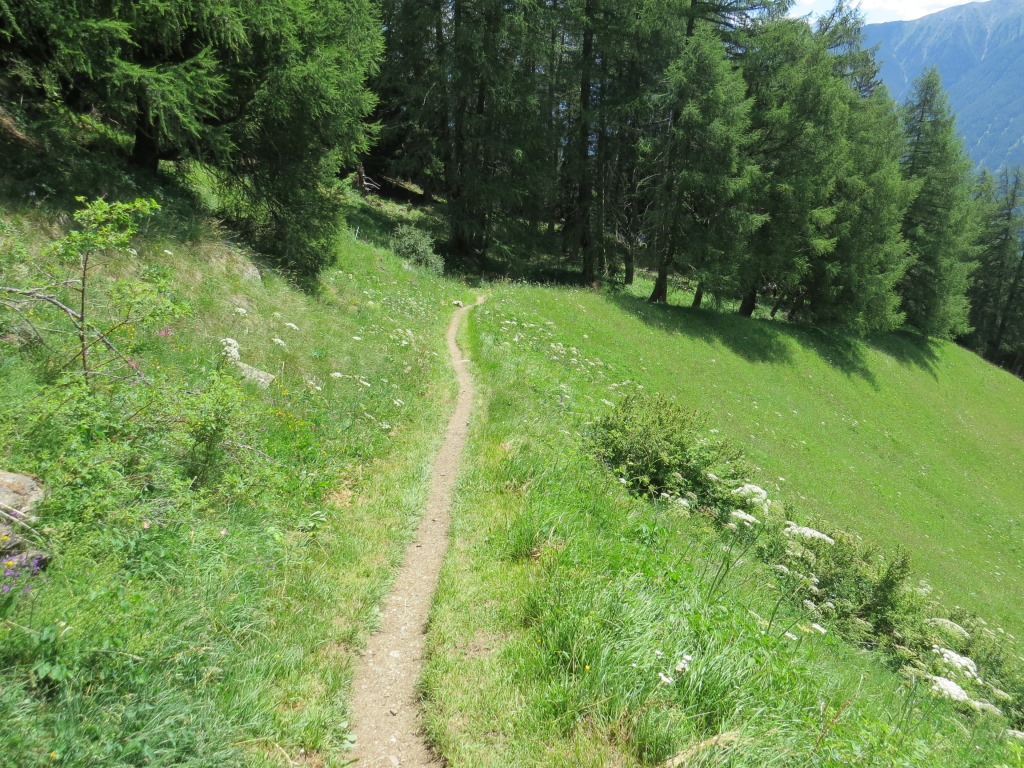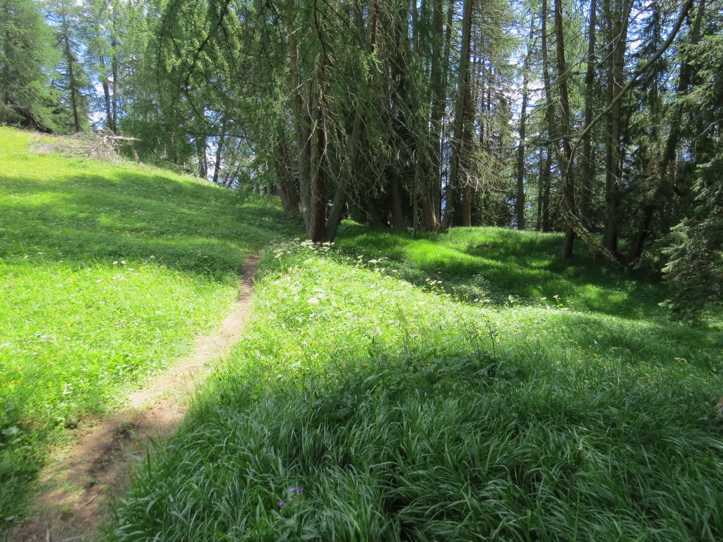 die Via Engiadina führt uns nun durch die grasbewachsene Flanke des Piz Soer weiter abwärts Datum 08.10.2022