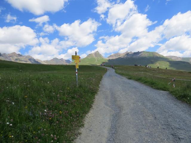 links haltend verlassen wir Motta Naluns und wandern leicht abwärts zu den Talstationen von Jonvrai Datum 08.10.2022
