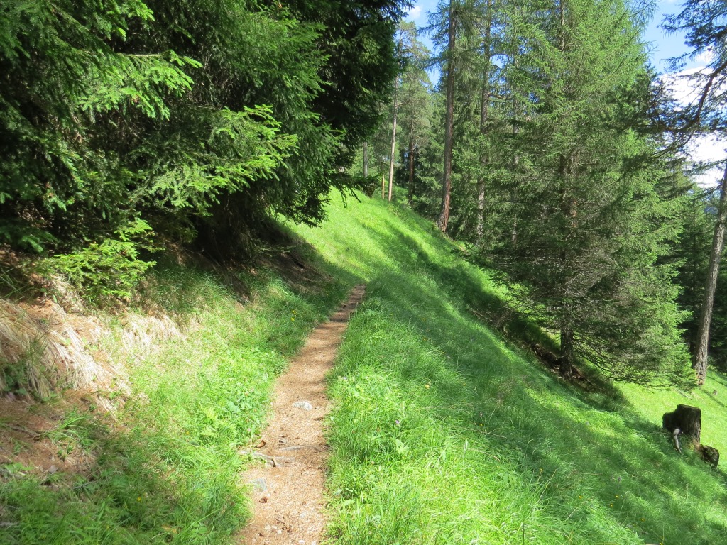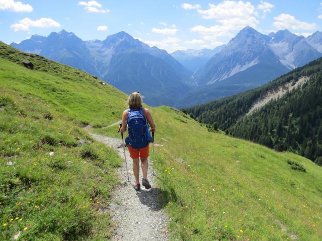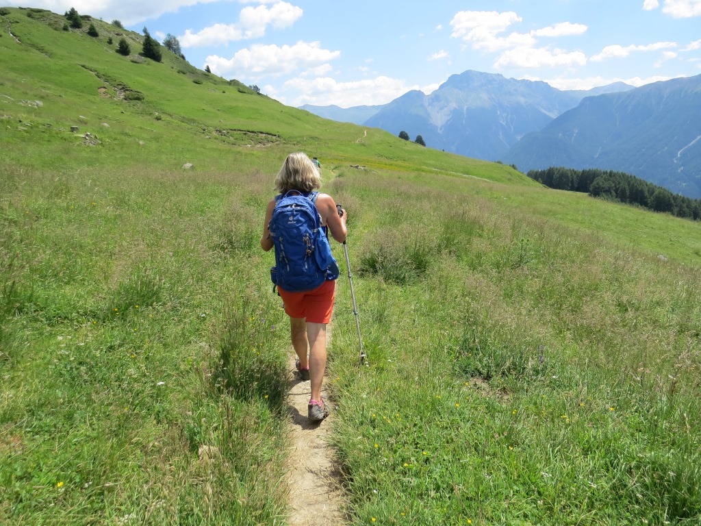 die Via Engiadina führt uns nun durch die grasbewachsene Flanke des Piz Soer weiter abwärts Datum 08.10.2022