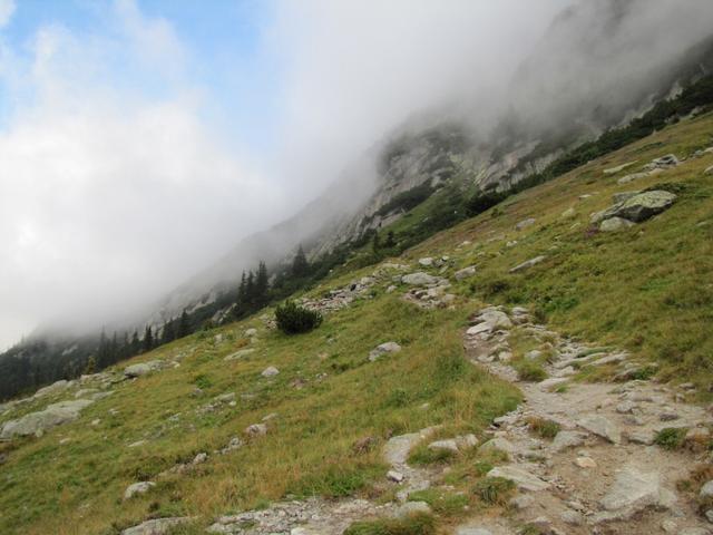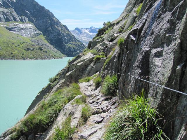 wir wandern nun auf der orographisch linken Seeseite entlang, Richtung Gelmerhütte