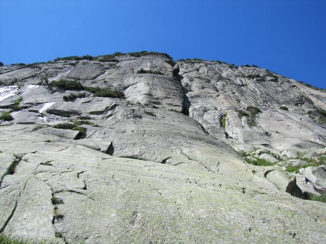 die kniffligste Stelle ist mit einem Seil gesichert. Granitstufen erleichtern den Aufstieg