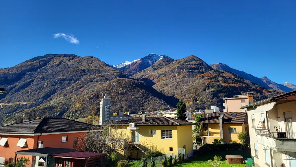 wir erreichen Claro und blicken hinauf zum schneebedeckten Pizzo Claro, den wir auch schon besucht haben